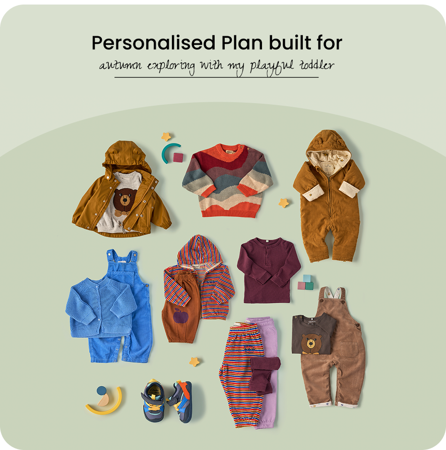 Swap for the next size up, whenever your little one is ready! We also offer Partial Swaps on the Personalised Plan if they outgrow some pieces before others. Swaps are super easy with your free returns label and reusable packaging. We can even collect outgrown clothes from your home for free!