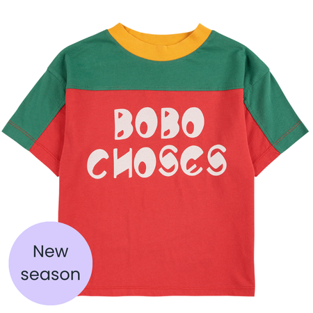 Bobo Choses 'colour block t-shirt' in red, green and yellow with Bobo Choses branding.
