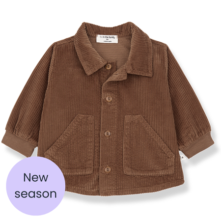 ‘Jureme’ shirt in 'castagna', a chestnut brown, with buttoned front, classic collar, ribbed trims and patch pockets. Made in Spain.