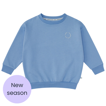MORI 'Generation Kind' Organic Cotton Oversized Jumper in Blue. Extra soft brushed inside jumper.