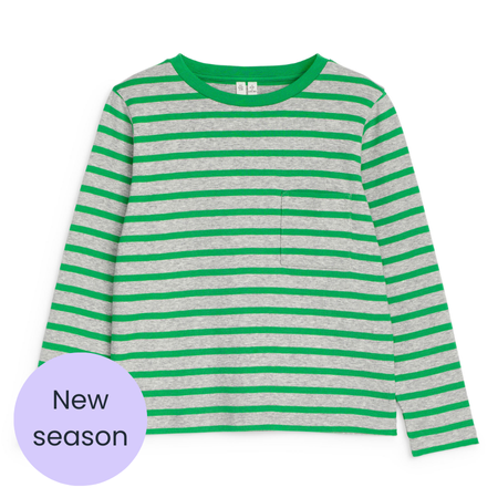 ARKET Long Sleeve T-Shirt with green and grey stripes. With dropped shoulders made from a cotton jersey, regular fit.