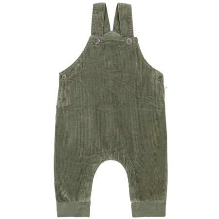 Olive green corduroy dungarees, with button adjustable straps, elasticated cuffs, cute back pocket and dropped crotch to ensure a super comfy fit for your little one.