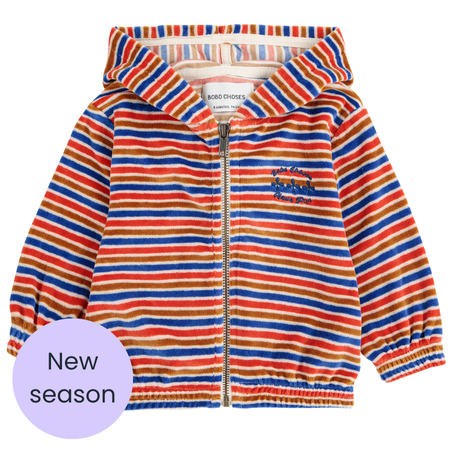 Bobo Choses 'Have fun striped zipped hoodie' with blue, brown and red stripes.