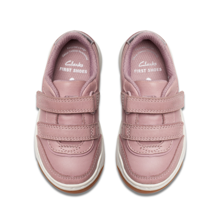 The Dusty Pink Urban Solo trainer is a Clarks classic, combining premium fabrics with toddler-friendly comfort. Soft leather uppers combine with a spongy foam footbed and light-weight, grippy sole to wrap busy little feet in ultimate comfort. Complete with double riptape straps, they’ll have your little one ready to go in no time!